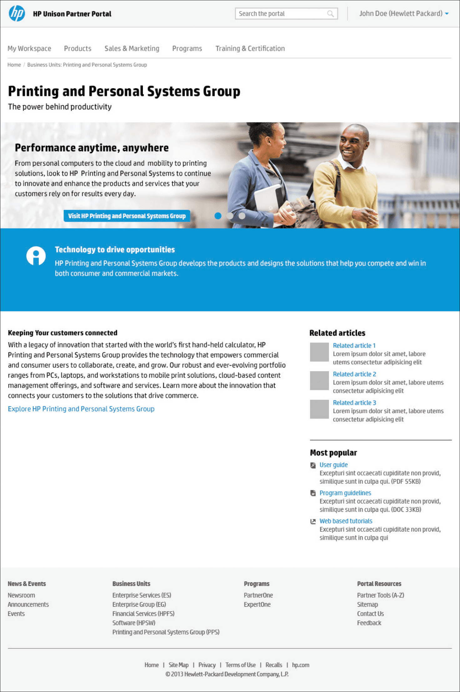 The project's goal was to consolidate the regional portals into a single, global site: HP Unison Partner Portal.